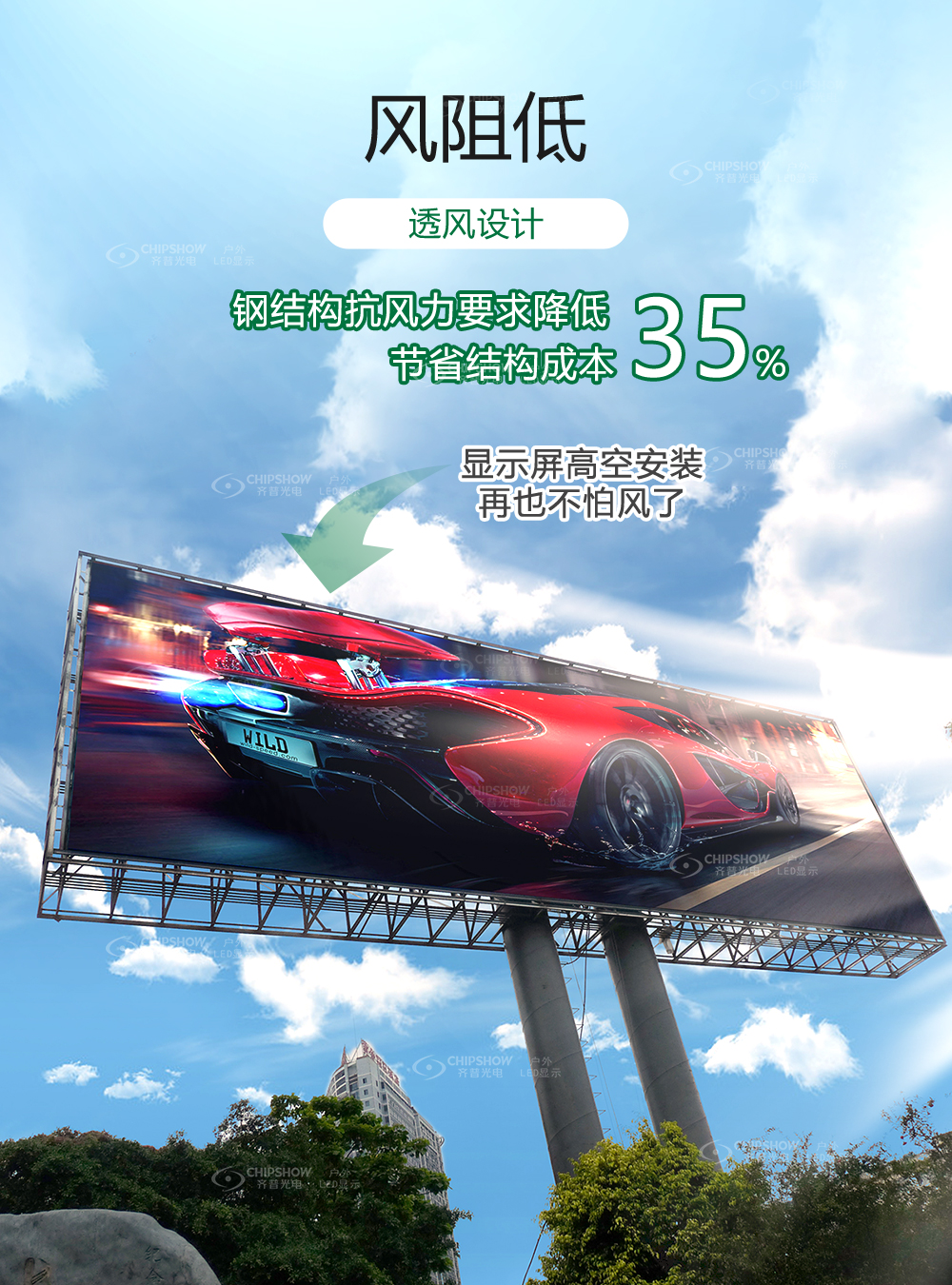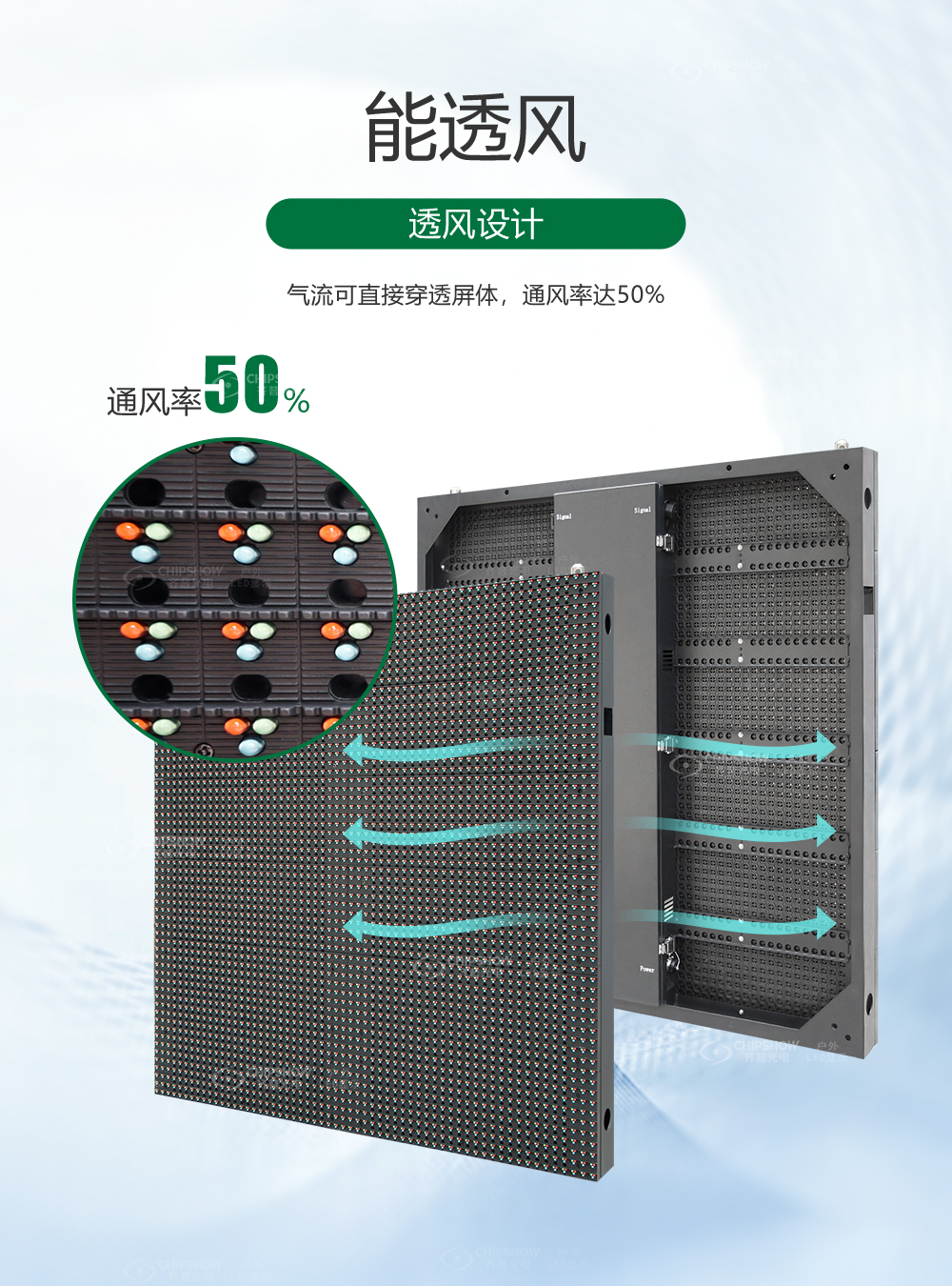 透:模组透风不透光设计,通透率为7%,风可以在屏体间流转,有效降低风阻。
