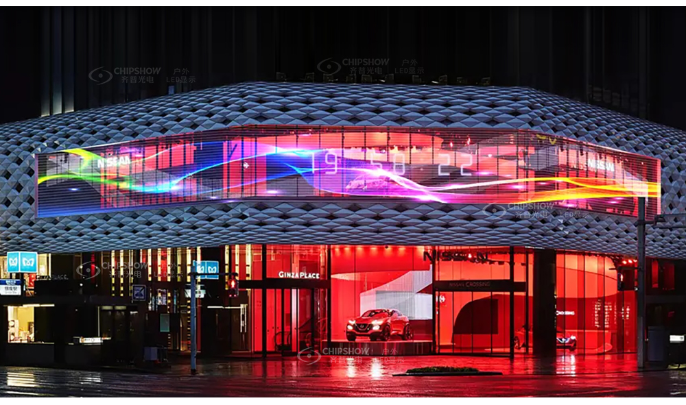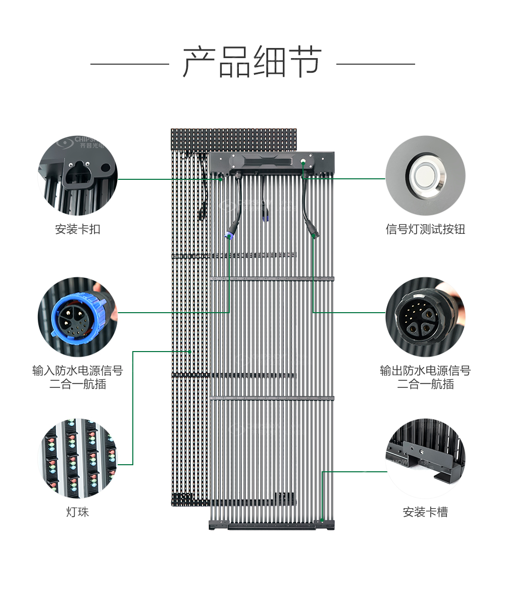 1. 高通透:不遮挡室内采光,25%通透度,玻璃幕变视频墙;