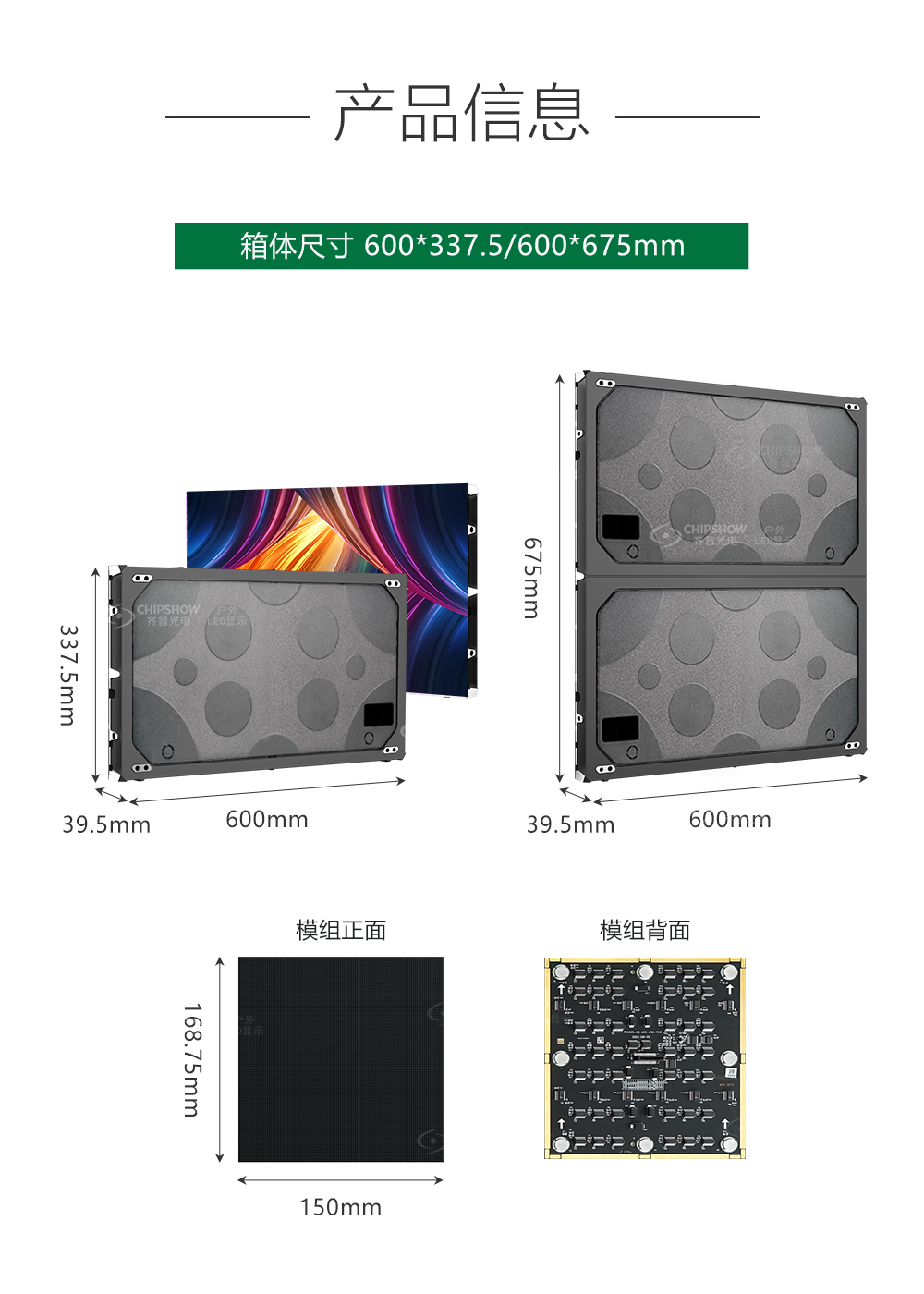 尺寸:模组150*168.75mm;箱体600*337.5*39.5mm